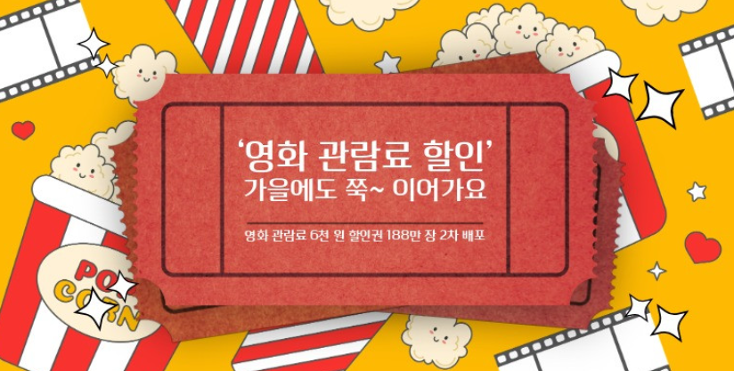 2025년 가을, 영화 관람료 6천 원 할인권으로 문화 생활도 즐기고 지갑 부담도 줄여보세요.