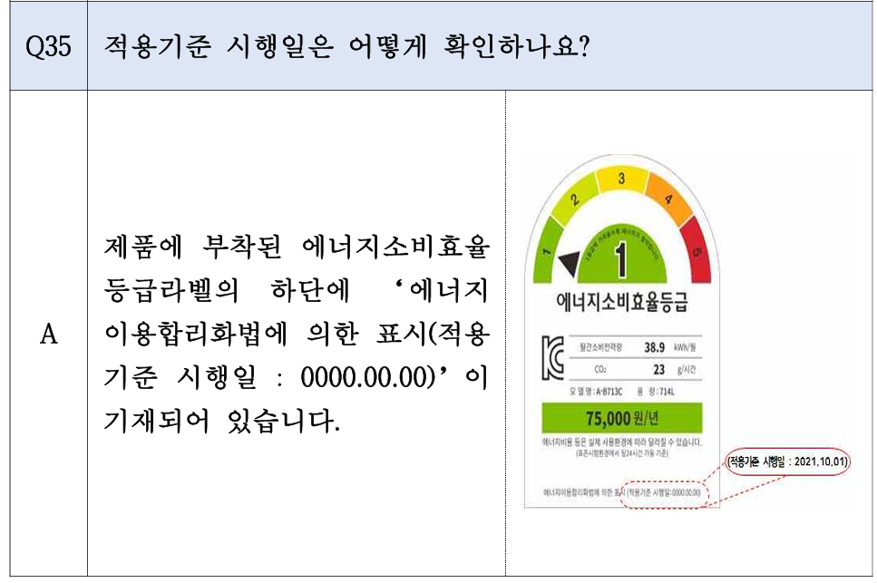 - 반드시 효율등급 라벨이 부착된 정품 구매
