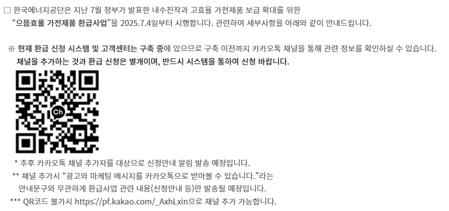 📌 카카오톡 채널 링크: 으뜸효율 환급사업 카카오톡 채널 바로가기