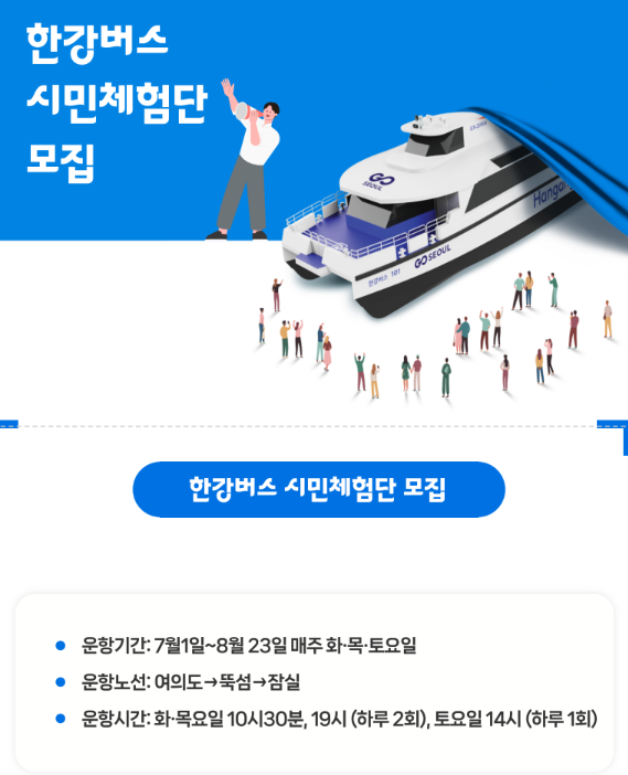 서울시가 운영하는 한강버스 시민체험단이 다시 돌아왔습니다!